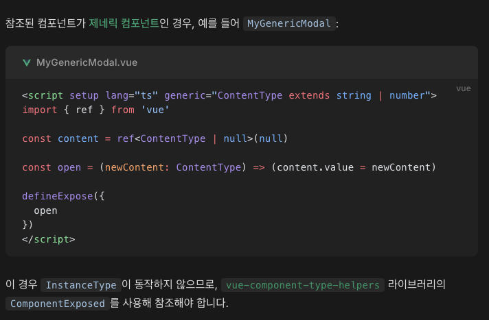 | ref 타입 잡는 법 | InstanceType<typeof MyModal> | ComponentExposed<typeof MyModal> |